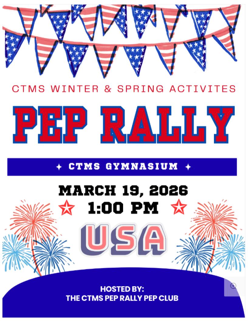 March 31 - CTMS Scheduling Night for Next Year (Current 6th & 7th Grade @5pm; Incoming 5th Grade @6pm)
